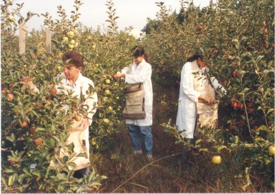 Bodur ağaçlarda tartışılmayan diğer bir üstünlük de, meyve hasadının daha kolay ve ucuz olması ile hasat esnasında ağaçlarda mekanik zararlanma ihtimalinin az olması ve merdiven kullanmaya gerek kalmamasıdır (Şekil 3). Bodur ağaçlardaki meyveleri çocuklar ve bayanlar yerden, merdiven kullanmaksızın kolayca ve çok kısa zamanda toplayabilirler.