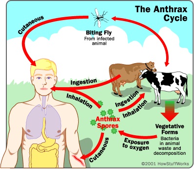 Hastalığın yayılması: Anthrax hastalığı rutubetli ve sıcak mevsimlerde (ilkbahar) daha çok görülür. Sel baskınları, mezbaha ve tabakhane atık suları ile karışık suların tarla ve çayırların sulanmasında kullanılması, bulaşık yem bitkilerinin başka yörelere nakli, ölen hayvan kadavralarının açığa atılması, yabani yırtıcı hayvanlar ve kuşlar (leş yiyen) dışkıları ile hastalık etkenlerini başka yerlere bulaştırırlar. Hastalığın bulaşması ağız yolu ile olmaktadır. Titreme, çırpınma ve ani ölümle seyreder.