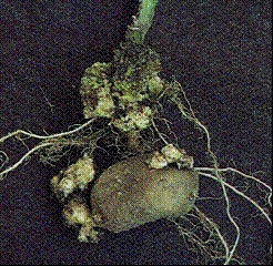 Baharda sıcaklığı 8 oC’nin üstüne çıktığında hastalıklı bitki artıklarında veya toprakta mevcut sporangiumlardan çıkan zoosporlar su içinde hareket ederek konukçu bitkinin toprakaltı organlarına ulaşıp hücre içine yerleşirler. Beslenip gelişir ve etrafı sarımsı kahverengi bir zarla sarar. Bu anda fungusun oluşturduğu stimulant madde hücrenin genişlemesine, kontrolsüz büyümesine ve bölünmesine neden olur. Bu hücreler sertleşir ve galleri oluşturur.