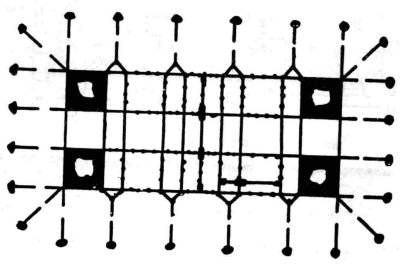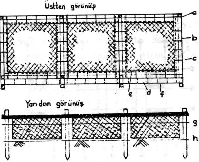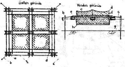 a) Beton direk, b, c) Demir çubuk, d) Çelik boru, e) Balık ağı,