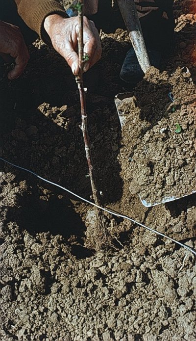 Ahududu bahçesi kışları çok sert geçmeyen bölgelerde geç sonbahar ve kış aylarında tesis edilir. Bu uygulamayla fidanların ilkbahar gelişme dönemine daha kuvvetli ve hazırlıklı girmesini sağlar. Ancak kış aylarında şiddetli don olayları görülen bölgelerde erken ilkbahar dikimi daha uygundur. İlkbahar dikimlerinde de fazla gecikilmemesi gerekmektedir. Ahududu fidanları bahçeye, kökleri ot, saman, perlit, torf gibi malzemeler ile nemliliğini koruyarak getirilmelidir. Bahçenin bir kenarına hendek açılır ve sıralanarak dikime kadar burada tutulurlar. Ahududu bahçelerindeki sıra aralıkları 2-2.5 m olmalıdır. Sıra üzeri aralıkları 0.4-1.0 m aralıklarla dikim yapıldığında maksimum verime daha kısa sürede ulaşılır. Dikilecek ahududu fidanlarında önce kök tuvaleti yapılır. Yaralı, kuru ve çok uzun kökler kesilir. Daha sonra, önceden hazırlanmış ve toprak gübre karışımı doldurulmuş çukurdan yaklaşık 20-30 cm derinliğe kadar toprak alınır. Dikim derinliği fidanın kök boğumunun tamamı toprak içinde kalacak şekilde ayarlanarak fidan bu şekilde hazırlanan çukura dikimi yapıldıktan sonra, fidanın dip kısmına konan toprak ayak ile sıkıştırılır (Şekil 10 ve 11).