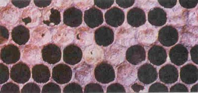 Resim 38. Avrupa yavru çürüklüğünde hastalıklı açık yavrudaki renk değişimi