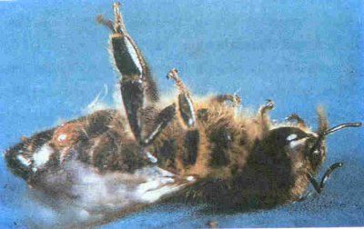 Resim 40. Varroa parazitinden dolayı ölmüş yetişkin arı