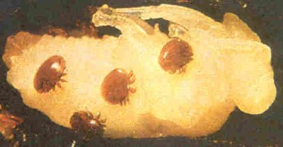 Resim 41. Arı pupası üzerinde yetişkin dişi varroalar