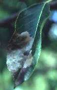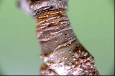 Resim 40. Armut psillidi ‘nin yapraktaki nimfi ve Armut psillidi‘ nin sürgündeki yumurtaları.