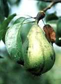 Resim 41. Zararlı nimflerinin yaprakta meydana getirdiği zarar ve Meyvedeki meydana gelen akıntı.