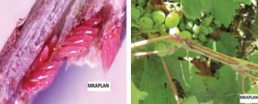 Dişilerin yumurta bıraktıkları dallar, daha bunlar açılmadan önce budanarak belirli bir yere yığılır ve bu dallar kurumaya terkedilir. Bu dalları yakarak imha etmeye gerek yoktur. Çünkü kesilen dallar rutubetlerini kaybedeceklerinden içlerinde bulunan yumurtalar da kururlar ve kendiliğinden telef olurlar. Bunun için bağda tesadüfen seçilen asmalardan alınan 100 adet yumurta bırakılmış dalda, yumurta rengi incelenir. Eğer % 50’den fazla dalda yumurtalar pembe renk almışsa dal kesme işlemine geçilir.