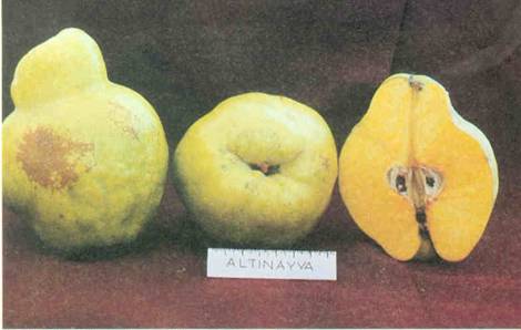 ALTIN: Meyvesi çok iri, sap tarafında çok belirgin boyun kısmı mevcut karın kısmı şişkindir. Kabuk koyu sarı renkli olup üzerinde 2-3 cm çapında bir veya iki pas bulunur. Meyve eti altın sarısı renkte, az suludur. Boğucu değildir. Ağaçları orta kuvvette büyür. Marmara Bölgesine tavsiye edilir.