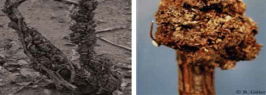 Toprağa yakın kısımlarda görülen urlar ve Bağ kök uru.