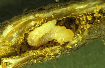 Bu böcekler bitkinin ikinci ve üçüncü yılında kökün orta kısmında açtığı tünellerden bitkinin kökünü içten yiyerek gelişmesini durdurmakta ve bitkinin ölmesine sebebiyet vermektedir. Zararı bu böceklerin larvaları yapmakta, bir kökün içinde 3-4 larva bulunabilmektedir.