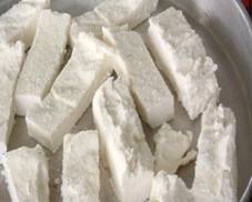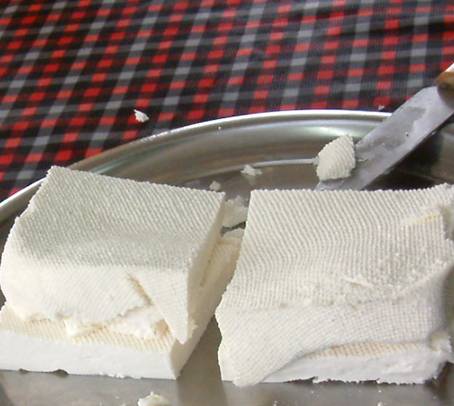 Pıhtı oluşunca, pıhtı kesme şeker büyüklüğünde kesilir.