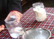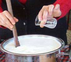 * 10 litre süt için yarım kapak peynir mayası bir bardakta sütle karıştırılarak süte ilave edilir.