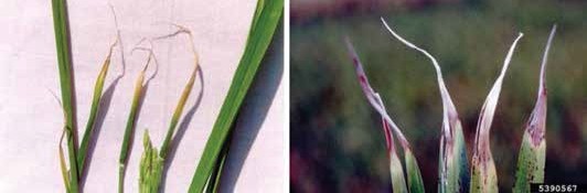Çeltik beyaz uç nematodunun çeltik bayrak yapraklarındaki ve çeltik yaprak uçlarındaki zararı.