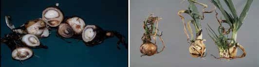 Soğan-sak nematodunun soğandaki zarar şekli.