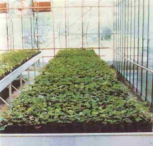 2- Tüplü Taze Fide Dikimi: Bu yöntemle fidelikte mayıs-haziran aylarında oluşan yavru bitkiler steril yetiştirme ortamlarında küçük plastik torbalarda mistleme altında köklendirilir ve temmuz- ağustos aylarında esas yerlerine dikilir. (Şekil 5). erkencilikte birinci sırayı alır aynı zamanda verim yönünden yaz dikimi kadar verimlidir. Bu dikim sisteminde kış ayları boyunca meyve alındığı için üretim ısıtılan seralarda veya dona karşı önlem alınan seralarda yapılmalıdır.