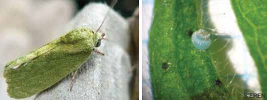 Yumurtalarını genellikle tek tek tepe sürgünlerine, genç yapraklara ve bitkinin diğer aksamlarına bırakır. Ancak bamya ve yabani bamya çiçeklerinde gruplar halinde yumurtalar görülebilir. Yumurtalardan 3-5 gün içinde genç larvalar çıkar. Zararlı popülasyonu sezonun son yarısında artış gösterir. Koşullara bağlı olarak pupa, larva veya her iki dönemde kışı geçirebilir. Bitkilerin büyümeye başladığı mayıs ayından itibaren kelebek uçuşları başlar. Ülkemizde yılda 4-5 döl verir.