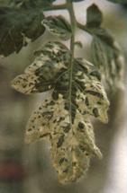 Resim 56. Domates mozaik virüsünün yaprak ve meyvede oluşturduğu mozaik belirtileri.