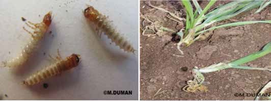 Ekin kambur böceği genç larvası ve Ekin kambur böceği’nin yaptığı yenik zararı