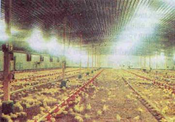 Aydınlık büyümeye yardımcı olur. Kümes penceresiz, kapalı sistemli ise ilk 5 günde tabanda m2’ ye 2,5 watt ışık şiddeti sağlanır. Daha sonra m2’ye 1,5 watt yeterli olur.