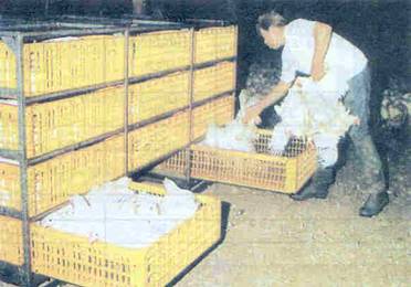 - Yakalanan piliçler taşıma kafeslerine yavaşça konmalı,