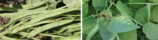 Fasulye Hale Yanıklığı hastalığının meyvede meydana getirdiği lekeler ve yapraktaki belirtisi