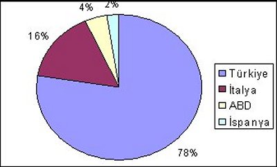 Şekil 13. Fındık üreticisi ülkeler ve üretimdeki payları