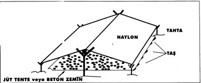 Zuruflu veya ayıklanmış fındıkların, harmana serilerek kurutulması esnasında yağışlardan korunmak için, plastik örtü kullanılmaktadır. Bu plastik örtüler doğrudan doğruya fındık üzerine serilmemeli, fındıktan en az 30 – 40 cm yükseklikte çardak yapılmak sureti ile kullanılmalıdır. Plastik örtü ile fındık arasında kesinlikle hava akımı olmalıdır (Şekil 22).
