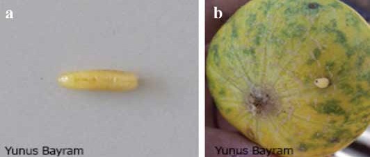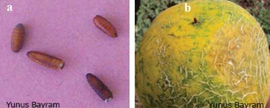 Kavun sineği ergini ve Kavun sineği pupaları.