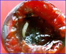 Resim 45. Kiraz sineği larvası ve Kiraz sineği zararı.