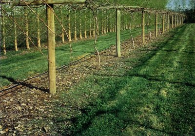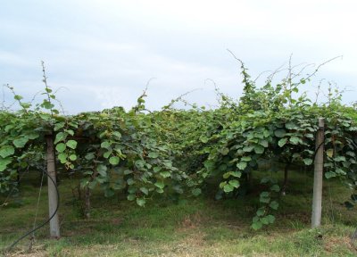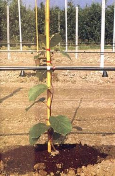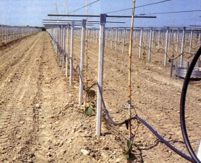 Şekil 20. Yeni tesis edilmiş bir kivi bahçesinde destek ve sulama sitemi