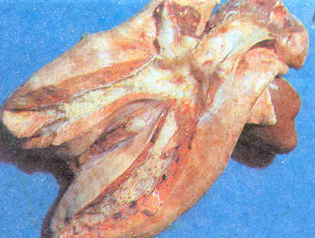 Havaların soğuması, bakım ve besleme şartlarının kötüye gitmesi durumlarında hayvanlarda belirtiler görülmeye başlar. Hasta hayvanlar göğüslerinin üzerine yatarlar, bitkinlik ve iştahsızlık görülür. ölen hayvanların karın boşluklarında kanlı bir sıvı toplanmıştır. Karaciğer şişkin, kanlı ve gevrektir. Bastırınca kolayca parçalanır. ölen hayvanların karaciğerleri laboratuvara götürülürse kolayca teşhis konur.