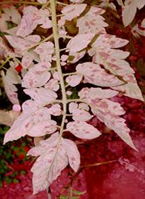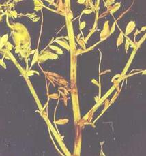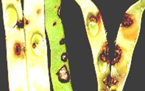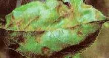Resim 25. Külleme Hastalığının yaprak üst yüzeyindeki belirtileri.
