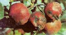 Çürüklükler: Meyve monilyası hastalığında meyve kabuğunda önce kahverengi lekeler meydana gelir, daha sonra bu lekelerin etraflarında, açık kahverengi bir halka oluşur. Meyvenin çürüyen kısmında sarı-devetüyü renkli içi içe halkalardan oluşmuş çıkıntılar meydana gelir. Sonunda hastalıklı meyve dokusu hızla su kaybederek buruşur ve mumyalaşarak dalda asılı kalır.