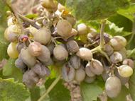 Mildiyö hastalığı: Bağ mildiyösü hastalığında başlangıçta yaprağın üst yüzeyinde sarı renkli tipik yağ lekeleri meydana gelir. Daha sonra yaprağın alt yüzünde beyaz bir fungal örtü oluşur. Bu lekelerin rengi zamanla kahverengileşir, kurur ve dökülür. Sürgünler üzerinde elips şeklinde lekeler meydana gelir. Hastalıklı taneler olgunluk dönemine doğru su kaybederek buruşur meşinleşmiş bir görünüm alırlar.