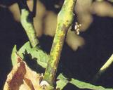 Resim 4. Yaprak delen hastalığının meyvedeki ve yapraktaki belirtileri.