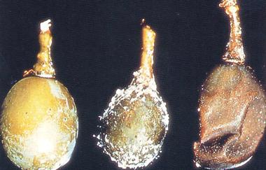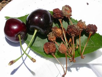 Resim 14. Kirazda sağlam ve Monilya zararı görmüş meyveler.