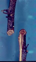 Armillaria ve Rosellinia kök çürüklüğü hastalığında ağaçların kök boğazına kadar olan kısmında, kabuk dokusu ile odun dokusu arasında beyaz fungal tabaka meydana gelir.