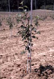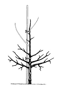 Dikimden hemen sonra destek sistemine ana gövde bağlansa iyi olur. Bir yaşlı fidan üzerindeki dallar da genellikle yatay ve yataydan 30 derece yukarı açılı dallar çok arzu edilmez. Yataydan 45 derece daha yukarı açılı dallar aşırı büyümeyi ve meyvelenmeyi teşvik etmek için 30 derece veya daha aşağı açıya bağlanmalıdır.