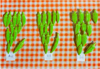 Şekil 9. Hasat olgunluğuna gelmiş farklı bamya çeşitleri.