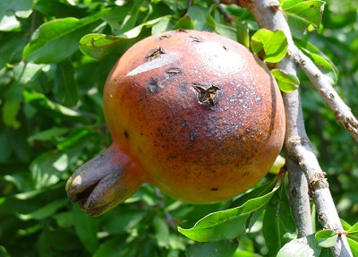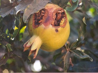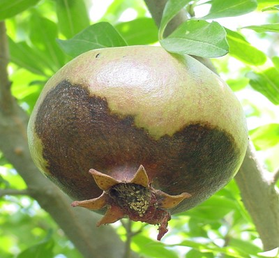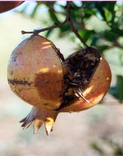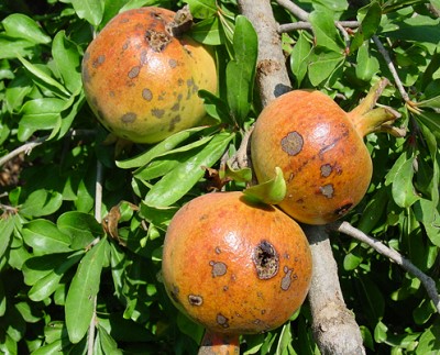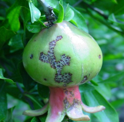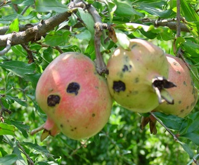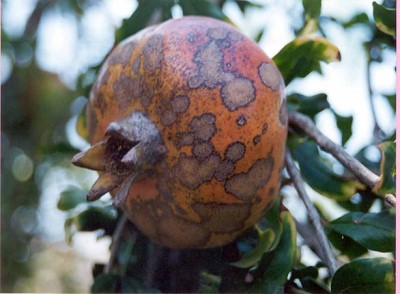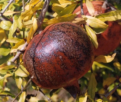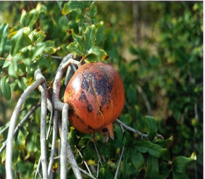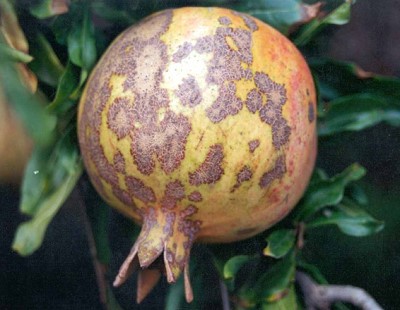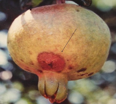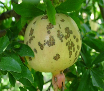 Hastalığın şiddetine ve nar çeşidine göre aynı meyve üzerinde çok sayıda leke gelişir.
