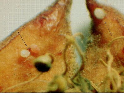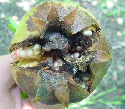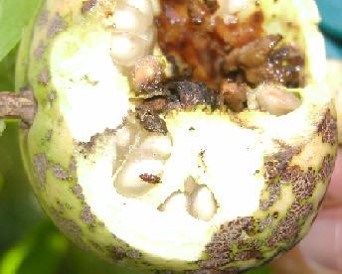 Meyve kesildiğinde tüm meyve içinin siyah renkli fungus ile kaplandığı görülür.