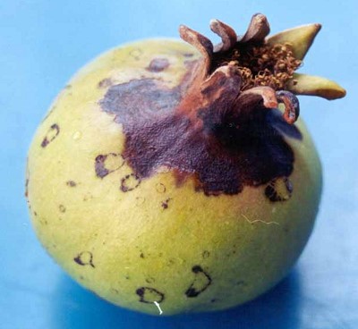 Genellikle kaliksteki (meyve tacı) herhangi bir böcek zararından sonra görülen çürümelerdir.