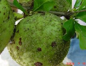 Vejetasyon dönemi içinde oluşan dolu yağışı ağacın tüm organlarında zarar oluşturmaktadır. Genellikle doludan en çok etkilenen kısım meyvelerdir.
