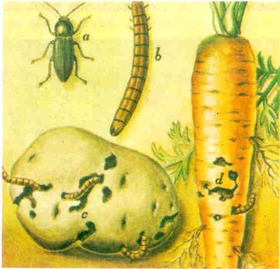 Yine patateste zararlı olan telkurdu havuç gibi bazı sebzelerde de zararlıdır. Larvaları bitkilerin köklerini kemirmek, kalın kök ve yumruların içine girerek galeri açmak suretiyle beslenir ve zararlı olurlar. Kökleri yenen sebzeler kurur.