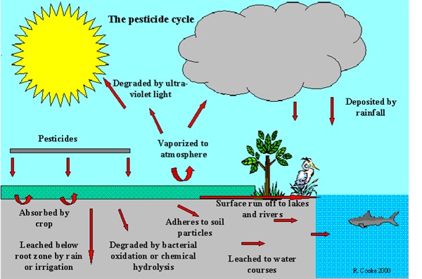 Pestisitler bitkiler üzerine püskürtüldükten sonra Sıcaklık, Işık, Yağışlar gibi çevre faktörlerinin etkisi ve bitkideki fizyolojik ve metabolik faaliyetler nedeniyle zehirliliklerini zaman içinde yitirirler.