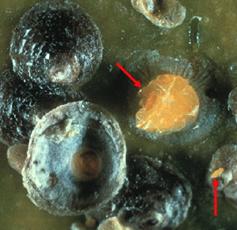 Resim 46. San Jose kabuklubiti ergini ve San Jose kabuklubiti’ nin meyvedeki zararı.