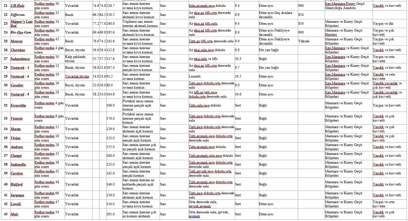 6. BAZI ŞEFTALİ ÇEŞİTLERİNİN ÖZELLİKLERİ