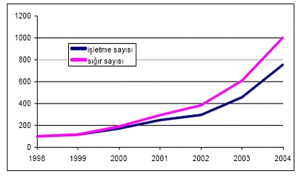 Grafik 14.1. Yıllar itibariyle kayıtlı işletme ve sığır sayısının değişimi .
