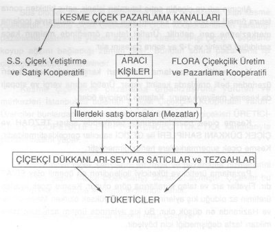 - Kesme çiçekler: Üretici - çiçekçilik kooperatifleri - perakendeci (çiçekçi) - tüketici kanalları ile tüketicilere ulaştırılır.