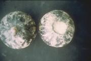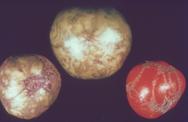 Resim 60. Virüsün kavun (solda) ve domates meyvesinde oluşturduğu belirtiler.